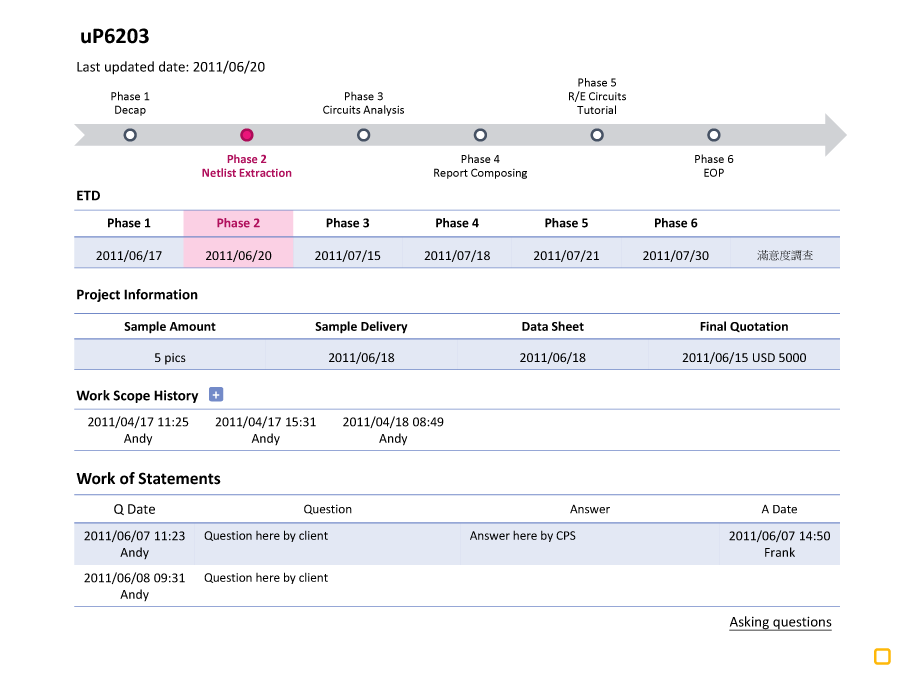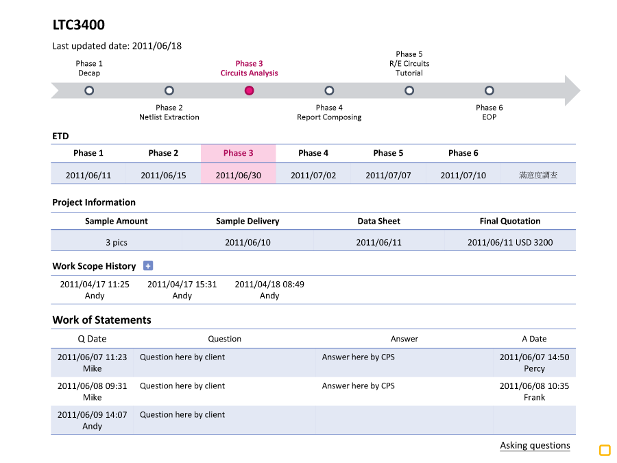 A customized PMS for IC reversing company to track projects’ process.