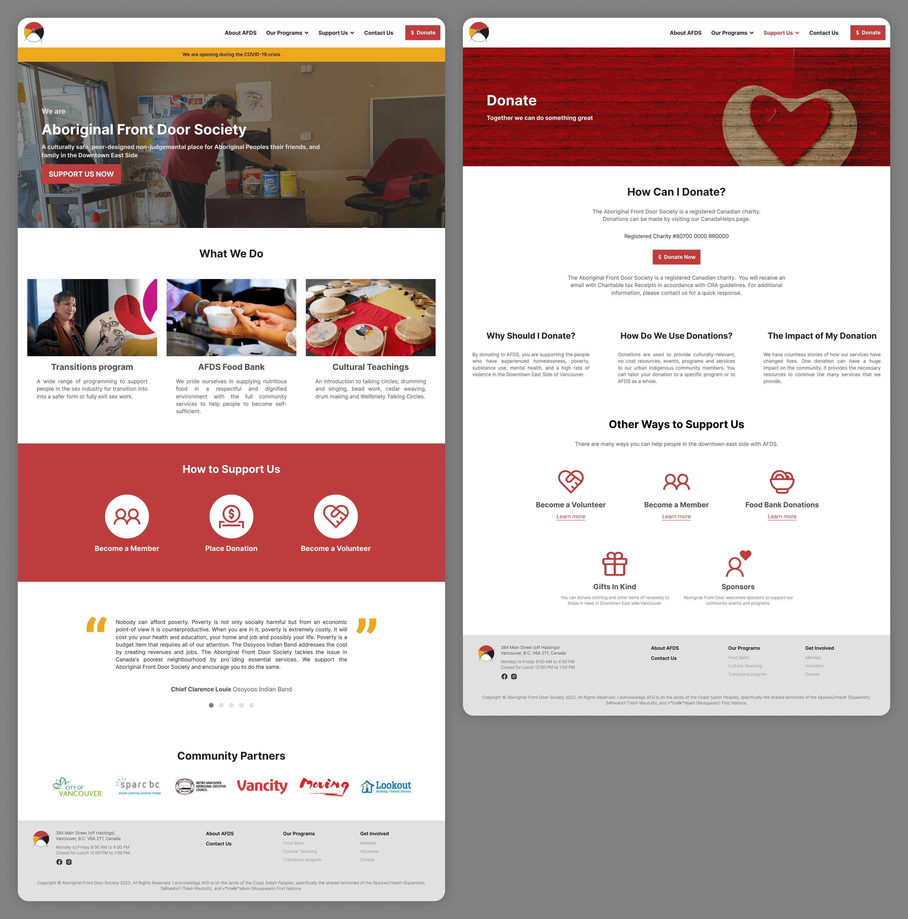Aboriginal Front Door Society (AFDS) is a culturally safe, peer-designed, non-judgemental space for Indigenous peoples in Vancouver’s Downtown East Side.