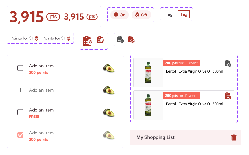 Increasing users' engagement by simplifying the product card and shopping list feature so users can collect more points by the quality and save more money. A filter and sorting function to help users to find the offers they like quickly.